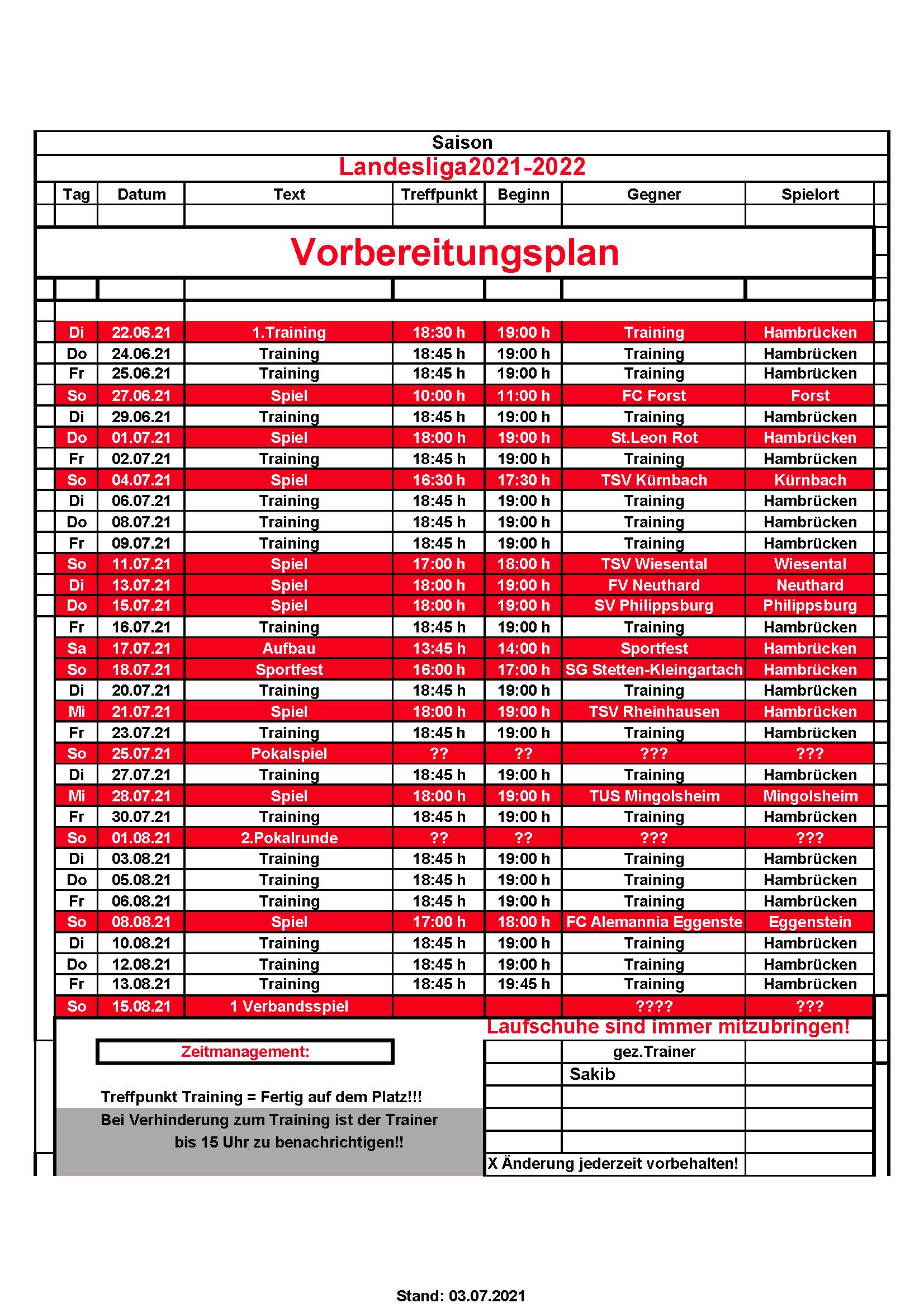 Unsere 1. Mannschaft steckt schon in der Vorbereitung für die (hoffentlich) kommende Runde.