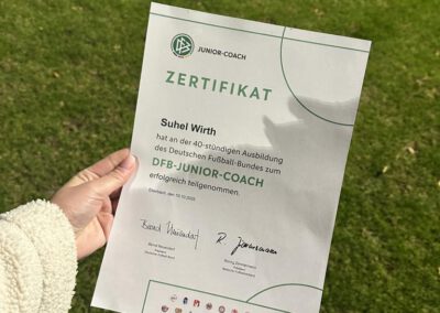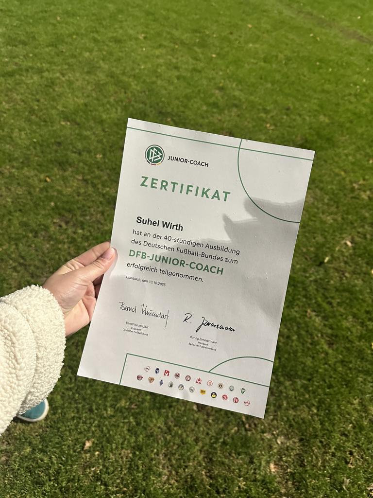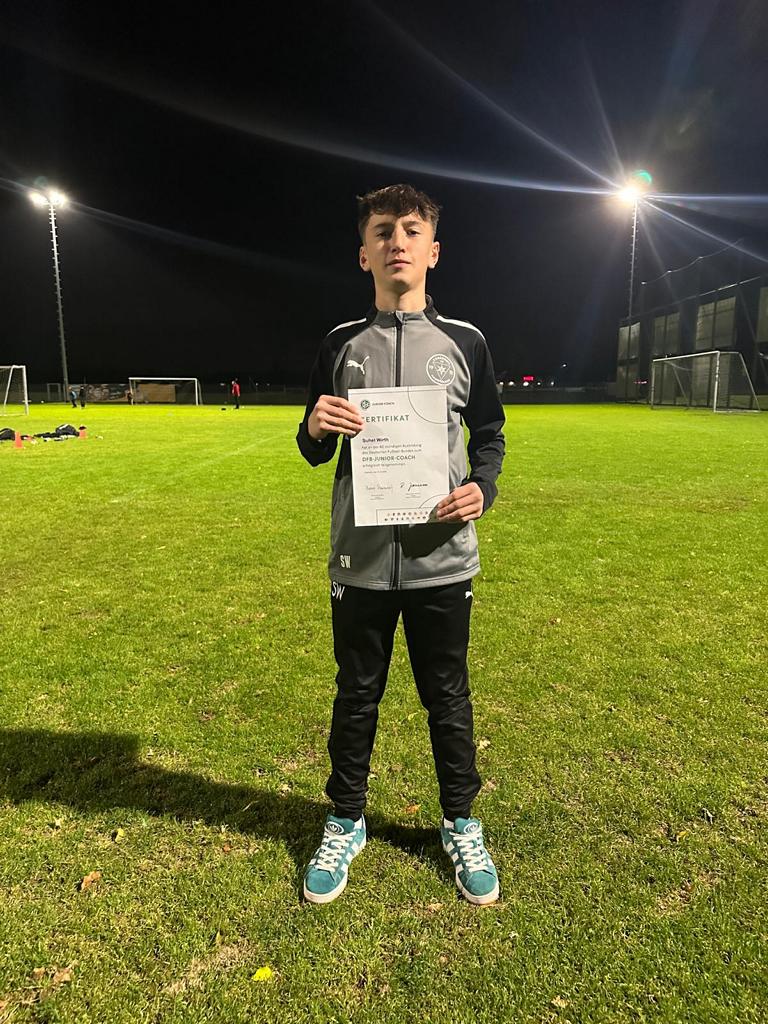 Wir gratulieren herzlich zum erfolgreichen Abschluss des DFB-Junior-Coach-Lehrgangs und bedanken uns für seinen Einsatz – auf und neben dem Platz. Wir sind stolz, solch engagierte Jugendliche in unseren Reihen zu haben.